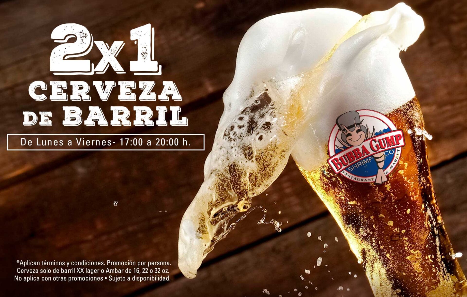 De lunes a viernes de 16:00 hrs a 18:00 hrs, 2x1 en cerveza de barril.
